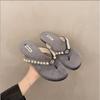 Perlen Zehensandalen Damen Zehensteg Pantoletten Ballerinas Sommer 2025 Trend Komfort Lässig Frau Elegant Sandalias Mujer
