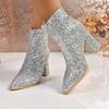 Mode Voll Diamant Blockabsatz Einzelstiefel Damenmode Spitzschuh Reißverschluss hinten Rutschfest Kurze Stiefel