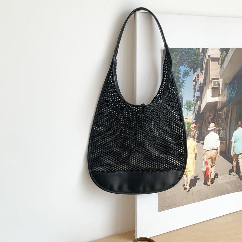 Summer new hollow beach woven bag niche splicing design casual shoulder bag women large capacity tote bag women