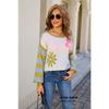 2025 Herbst und Winter Neue Übergröße Damenbekleidung Spleißen Modischer Blumen-Gestreifter Rundhals Langarm Vielseitiger Pullover