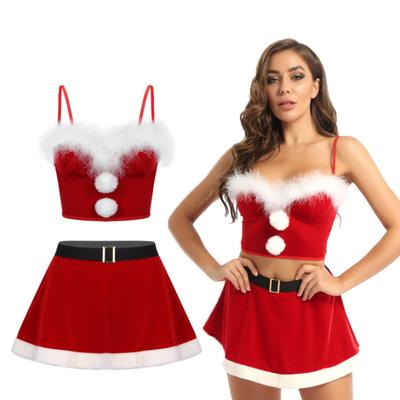 Damen Roter Flanell Bügel-BH Weihnachten Homewear Kunstpelzbesatz Cosplasy Cami Crop Tops Weihnachtsfeier S-2XL