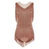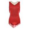 Damen Latein Tanz Body Rundhals Ärmellos Strass Quasten Design Schritt zum Öffnen Leotard