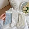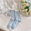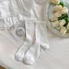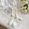 Frühlings- und Sommersocken, Damen-Mittelwadensocken, Weiße gehäkelte Schleifensocken, Graue lange Socken, Spitzen-Blasenöffnung