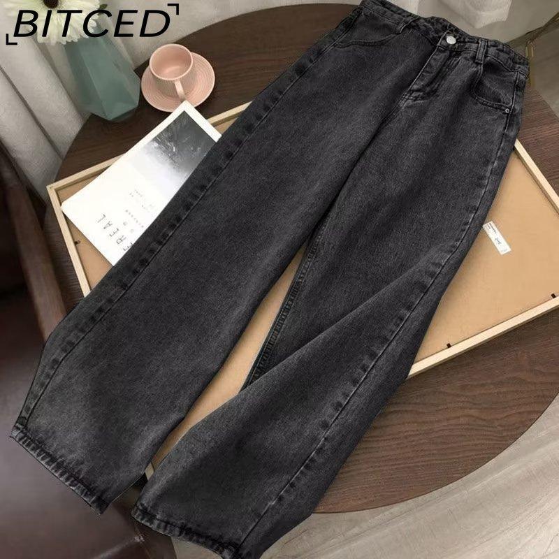 BITCED Wide-leg Pants for Girls, Spring and Autumn Retro Straight-leg Dad Pants, High-waisted Ins Jeans, Versatile for Students