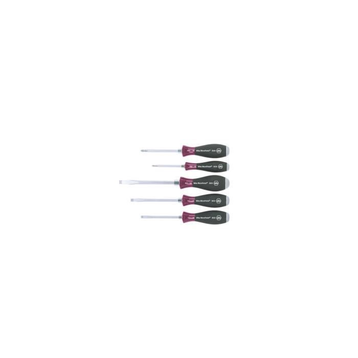 Wiha jeu de tournevis microfinish fente, phillips avec lame six pans avec disque de frappe, 5 pcs (29138)