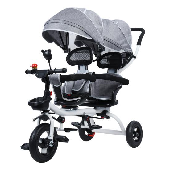 Verdeck, Schiebegriff und sichere Dreiecksstruktur: Der Kinderwagen hat ein Sonnendach zum Schutz der zarten Babyhaut im Sommer. Mit einem Schiebegriff können Sie vorwärts schieben oder zur zusätzlichen Sicherheit fahren.. Kinder-Zweisitzer-Dreiräder mit ergonomischen und bequemen Sitzen für zwei Sitze. Da Vorschulkinder im Alter von zwei bis acht Jahren zweisitzige Kinderdreiräder mit Beifahrersitzen fahren können, haben wir eine Dreiecksstruktur verwendet, um Unfälle zu verhindern und zu verhindern, dass Spiel oder äußere Einflüsse zum Umkippen führen..