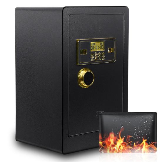 Große Größe: Der feuerfeste Tresor hat eine extra große Höhe von 60 cm. Die Außenmaße sind 23,62 '' x 14,96 '' x 13,39 ''. Super großer Innenraum ermöglicht es Ihnen, fast alle Ihre Wertsachen wie Laptop, Pistole, Schmuck, Dokumente, Bargeld usw. zu verstauen.. Ihre Privatsphäre schützen.