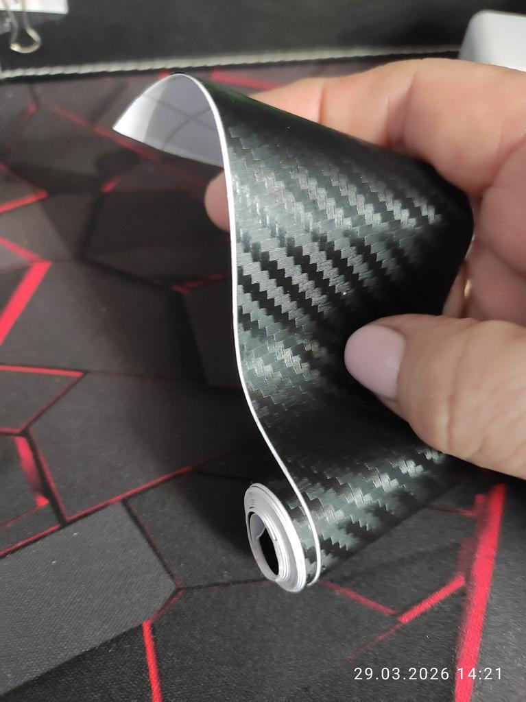 Carbonfolie, die die Textur von Kohlefaser imitiert, die zum Bekleben von Oberflächen verwendet wird, insbesondere in Autos. Vinylfolie mit Kohlefaser-Imitation (Carbonfolie). Bestimmung: Dekorative Beklebung von Elementen des Fahrzeuginnenraums, Außenteilen sowie anderen Oberflächen zur Erzeugung eines Carbon-Effekts. Besonderheiten: Leicht, robust, kratzfest und witterungsbeständig. Ich empfehle.👍👍👍
