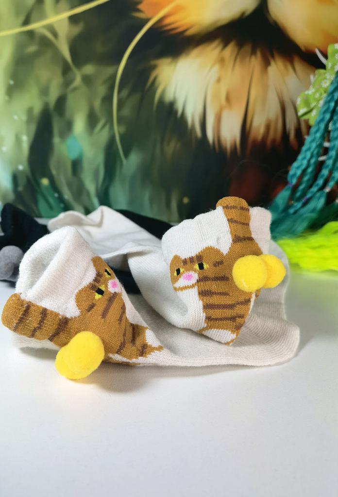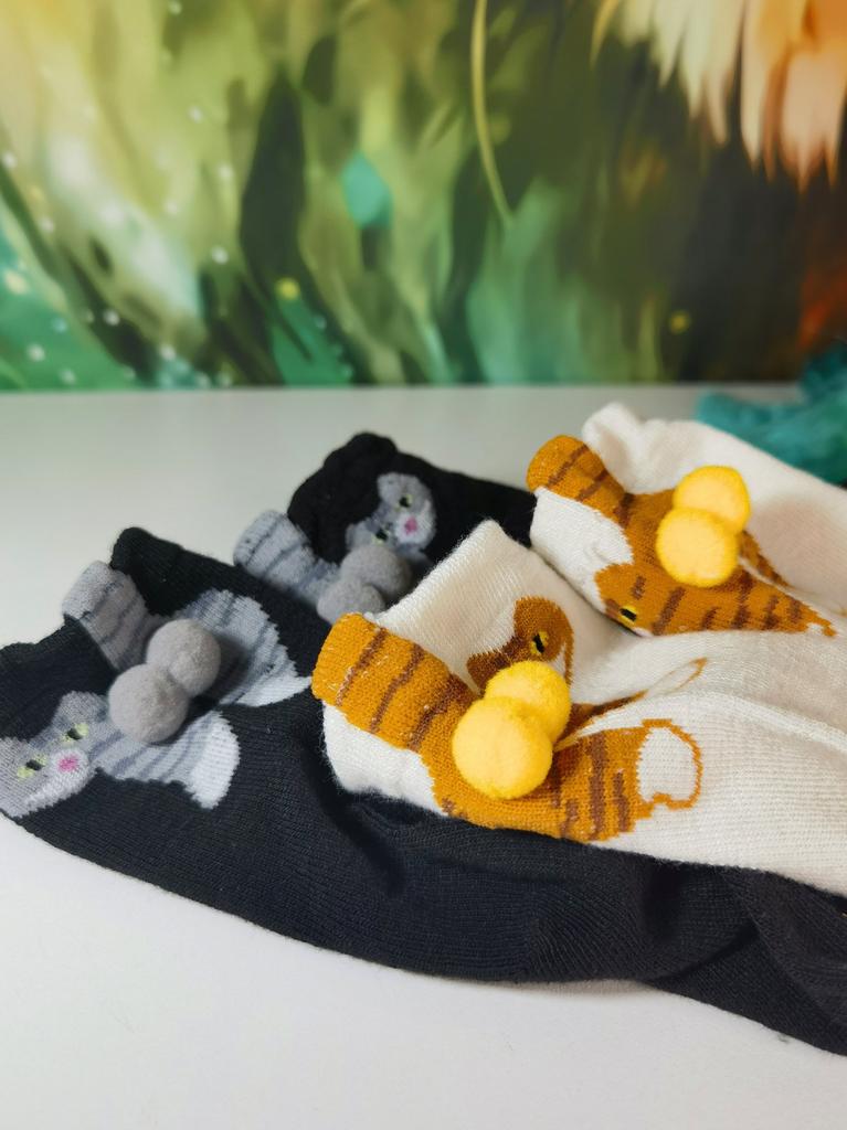 Damen Niedliche Lustige Katze Ins Koreanischer Stil Mittelhohe Socken Dreidimensionaler Ball Kreative Socken