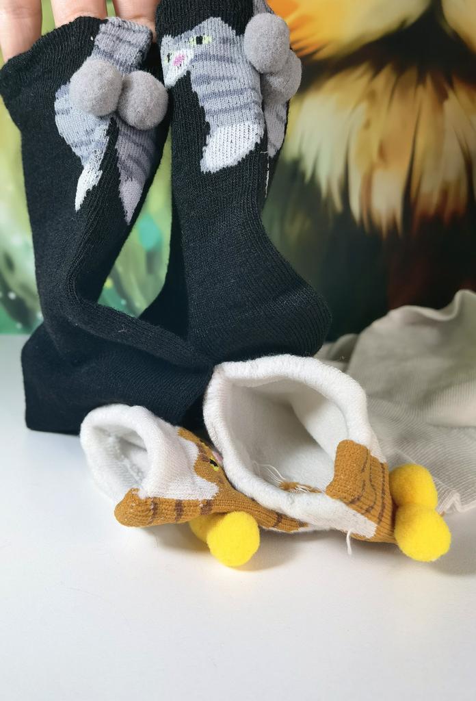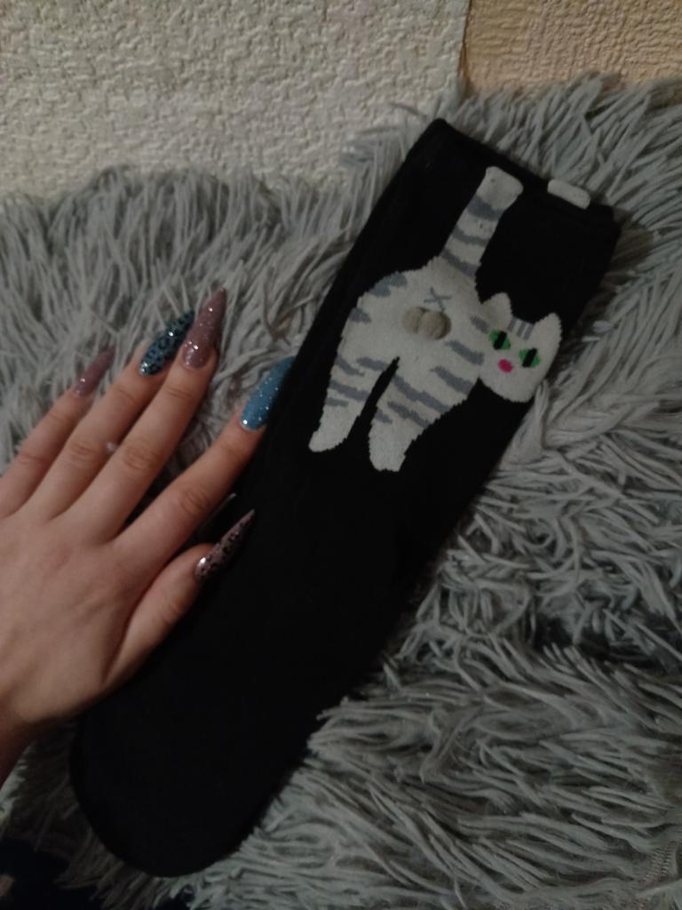 Socken mit dekorativen Elementen) Zur Auswahl steht eine unterschiedliche Anzahl, ich habe ein Paar schwarze und ein Paar weiße.. Dekorative Elemente bei den Kätzchen sind aufgeklebt. Socken sind weich, dehnbar, bequem. Ich bin zufrieden 👌