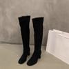 Vintage Plissierte Damen Kniehohe Stiefel Schuhe Herbst Winter Damen Elegant Eckige Zehenpartie Dicker Absatz Lange Stiefel