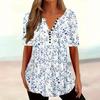 Summer Women's V-neck Button Short-sleeved Casual Printed Pullover Top