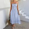 Damen Sommer A-Linien Rock Lässig Urlaub Spleißen Hohe Taille Trägerkleid