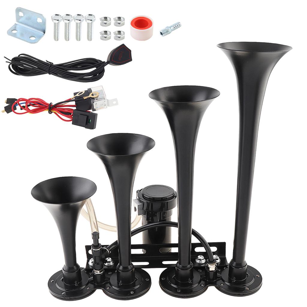 - Kompakt & Vielseitig für verschiedene Fahrzeuge: Unser 4-Hörner-Zugsignalhorn-Kit ist auf Vielseitigkeit und Kompaktheit ausgelegt und für eine breite Palette von Fahrzeugen geeignet, darunter Autos, Boote, Lastwagen, Traktoren, Motorräder und mehr.. Es besonders geeignet für große Fahrzeuge im dichten Verkehr oder in Notfallsituationen, in denen eine laute und deutliche Warnung lebenswichtig ist.