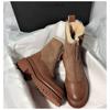 2025 Warme Plüschstiefel Damen Winterschuhe Chelsea Plateau Lässige Damen Stiefeletten Runde Zehen Fell Goth Botas