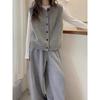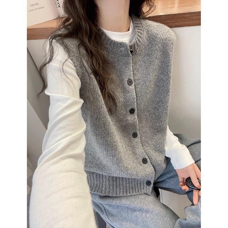 Einfarbige Damen Strickweste Koreanischer Rundhals Einreihiger Pullover Frühling Herbst Kurz Mode Damenbekleidung