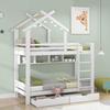 Hausbett Kinder, Hochbett 90x200 cm, Etagenbett Holz, 3 Betten, Rausfallschutz, Lattenrost, Jugendzimmer, Treppe, Spielbett, Weiß