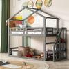 Hochbett 90x200 cm, Hausbett Kinder, Etagenbett Holz, Rausfallschutz, Lattenrost, Dach, Ecktreppe, Spielbett Jungen & Mädchen, Weiß & Natur