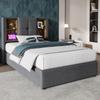 Polsterbett 160x200cm, LED-Beleuchtung, hydraulisches Funktionsbett, Stauraum, Doppelbettgestell, Lattenrost, Bettkasten, Kopfteil, Grau