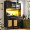 Küchenschrank Arbeitsplatte, Küchenbuffet Hochschrank 4 Schränke, 3 Schubladen, Verstellbare Ablagen, LED Weiß+Natürlich