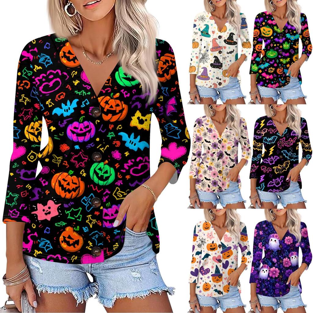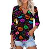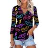 Damenmode Lässiges bedrucktes Button-Down-Hemd 3/4 lange Ärmel Oberteile