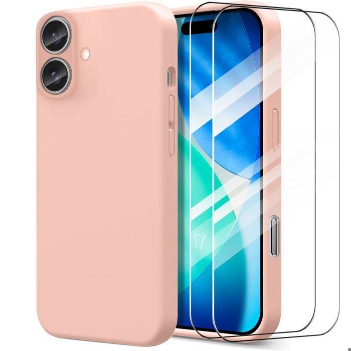Schutzhülle - BOOLING - für iPhone 17 - Kratzfestes Flüssigsilikon Rosa - 2 gehärtete Gläser