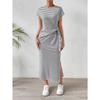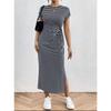 Gestreifte, figurbetonte Kleider mit taillierter Taille, schlankmachendem Schlitz und Rundhalsausschnitt für Damen