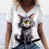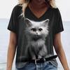 Damen V-Ausschnitt Kurzarm 3D T-Shirts Tiere Gedruckt Sommerkleidung Niedliche Cartoon Katze Damen T-Shirts Streetwear Oberteile