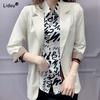 Tops Intellectual Women's Clothing Notched Simplicity Patchwork Loose Three Quarter Sleeve Creative Formal Fashion Casual Summer