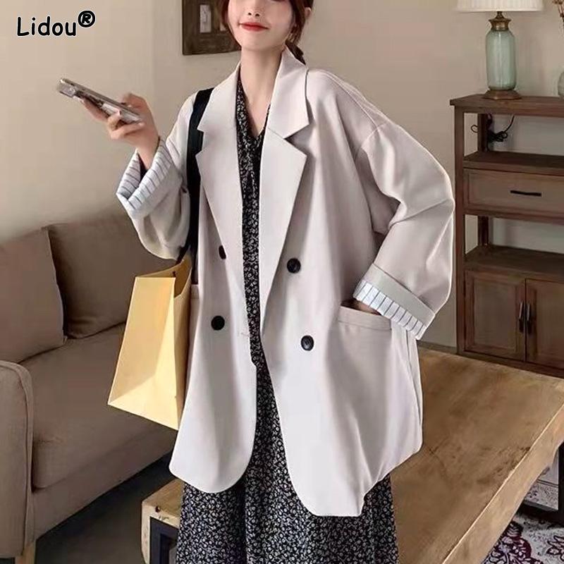 Koreanische Mode 2023 Damenbekleidung Business Casual Lockere Blazer Unifarben Temperament Taschen Knopf Frühling Sommer Dünn