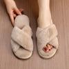 Damen Flauschige Plüsch Hausschuhe Winter Offene Zehen Warme Hausschuhe Rutschfest Indoor