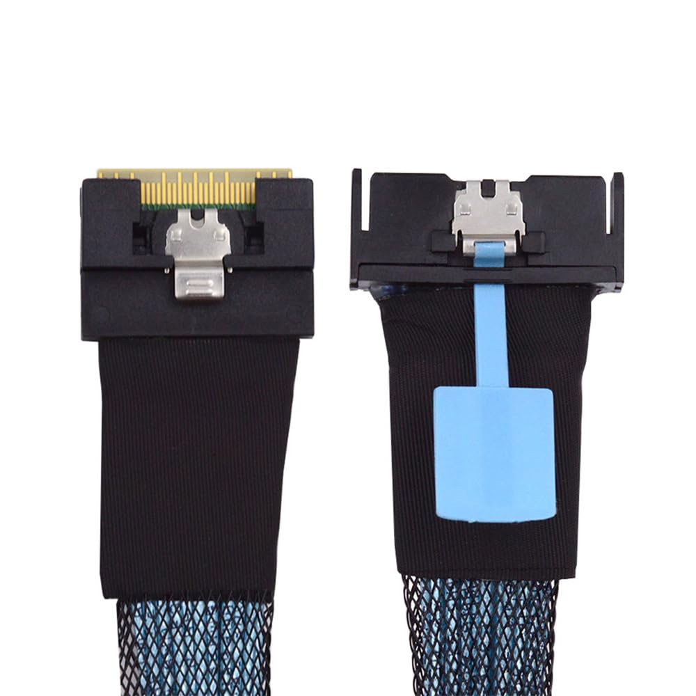 Einfach zu verwenden: Stecken Sie einfach das SFF-8654 74-Pin-Ende des Kabels in Ihr Gerät und das MCIO-Ende in Ihre externe Festplatte, und schon können Sie loslegen.. PCI-E 5.0 Mini Cool Edge IO MCIO PCI-E Slimline 8i 74Pin Stecker auf SFF-8654 SAS 4.0 74Pin Stecker Verlängerungskabel 50cm Hohe Datenübertragungsgeschwindigkeit: Dieses Kabel ist für die Verwendung mit SSDs konzipiert, die MICO-zu-SFF-8654-Anschlüsse verwenden, und ermöglicht eine schnelle und zuverlässige Datenübertragung mit Geschwindigkeiten von bis zu 24 Gbit/s.. Mini Cool Edge IO (MCIO) Kabelkonfektionen,Diese Produkte