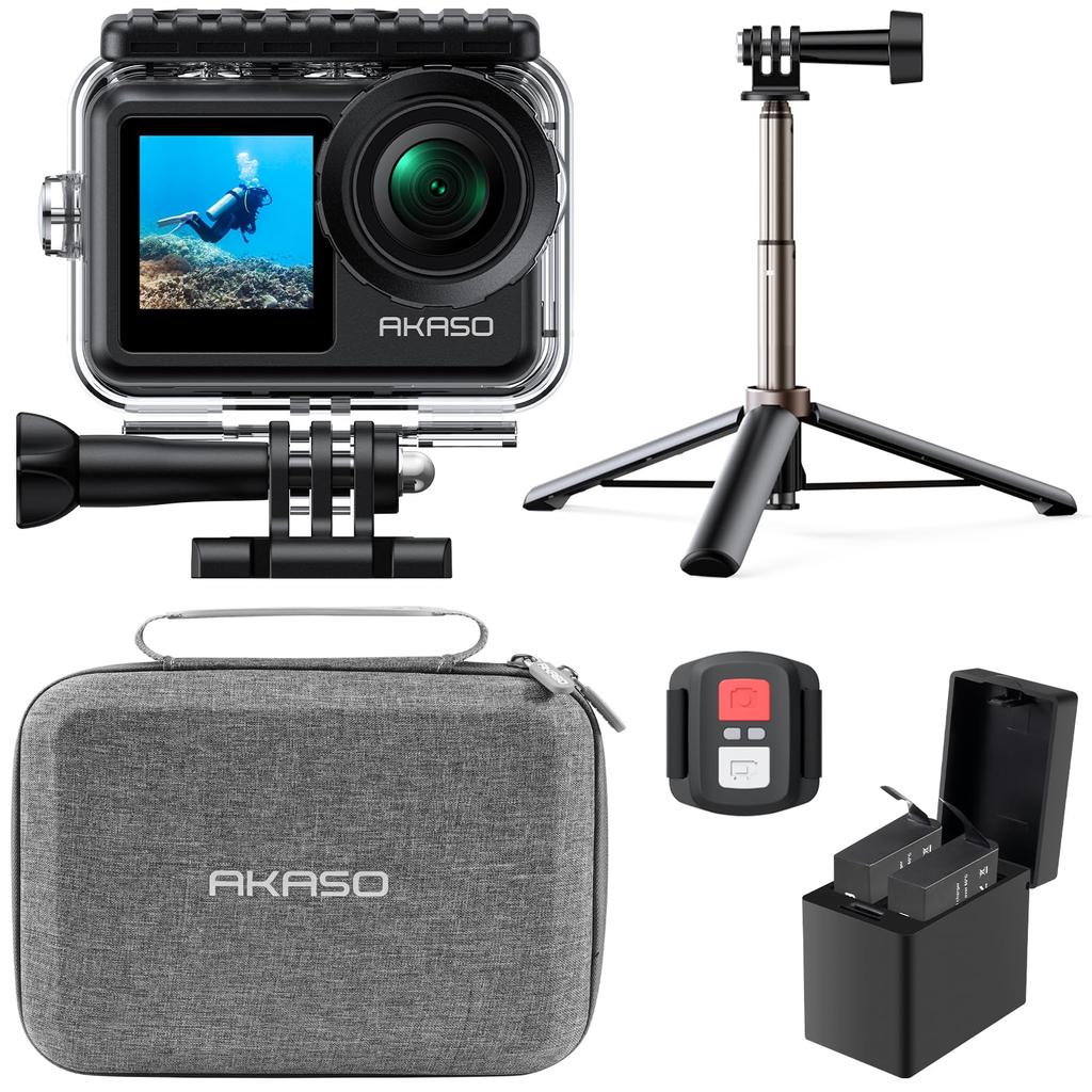 AKASO Brave 7 LE Actionkamera, 4K 60fps, 20MP, IPX7 Wasserdicht, 40M Wasserdicht, Unterwasserkamera, 6-Achsen Bildstabilisierung, Duale Farbe, Touchscreen, Zeitraffer, WiFi/Type-C Externes Mikrofon, Zwei 1350mAh Akkus, Fernbedienung, HDMI-Ausgang und Selfie-Stick
