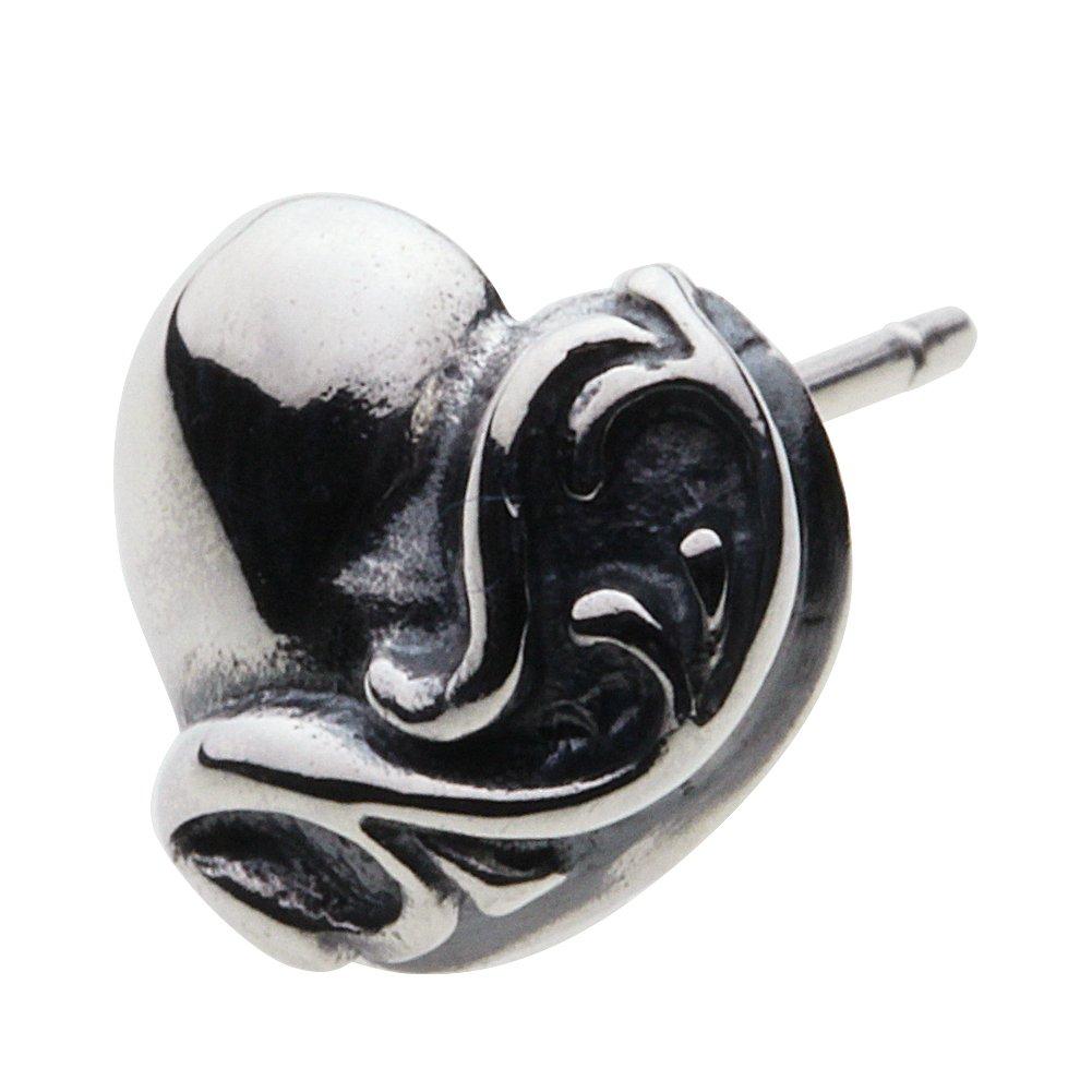 These silver earrings feature a heart motif with a three-dimensional arabesque pattern, creating a striking contrast between the softness and hardness of silver jewelry. They are unisex and can be worn as a pair. The silicone backing shown in the photo is included.