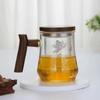 Hochborosilikatglas Hochtemperaturbeständig Glas Teetasse Tee-Wasser-Trennung Kann getrennt werden Dreiteilige Holztasse Büro Trinkbecher