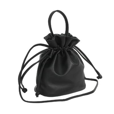 Schulter-Yukata-[Gisele]-Tasche, klein, Kordelzug, leicht, Umhängetasche, 2-Wege, kompakt, Mini, Pochette, Tasche, Handtasche, Damen (Schwarz)