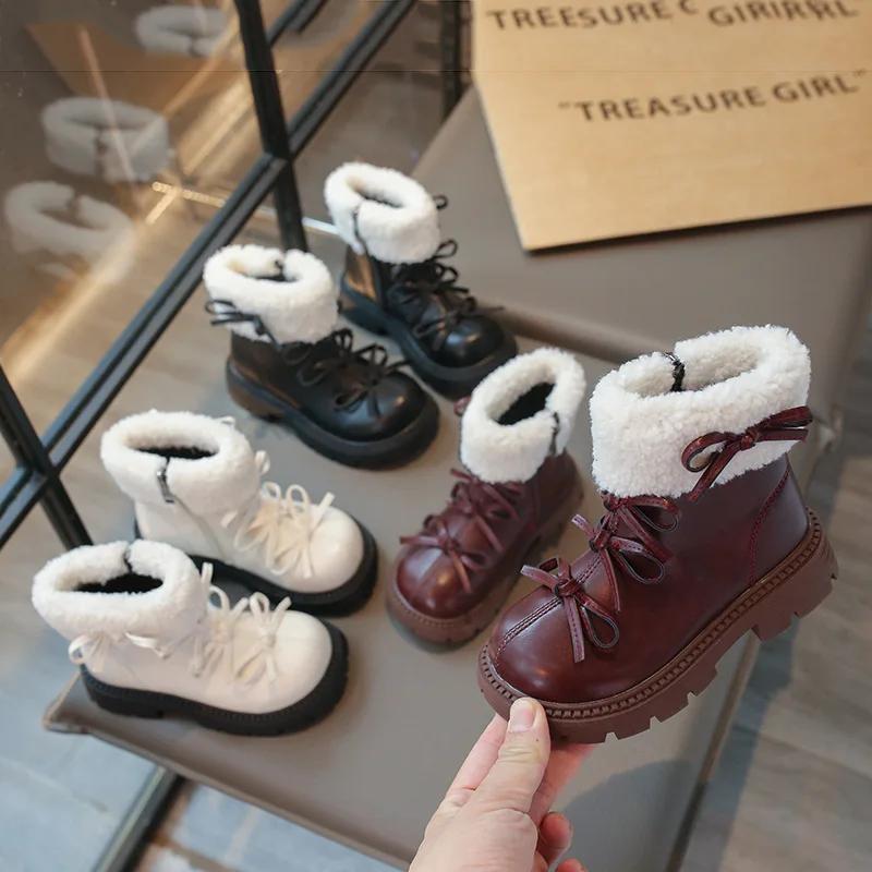 Mode Mädchenschuhe Warme Mädchenstiefel Niedliche Schleife Kinderschuh Schlichter Klassischer Stiefelette Vielseitiger Kurzer Stiefel Bequemer Süßer Baumwollschuh