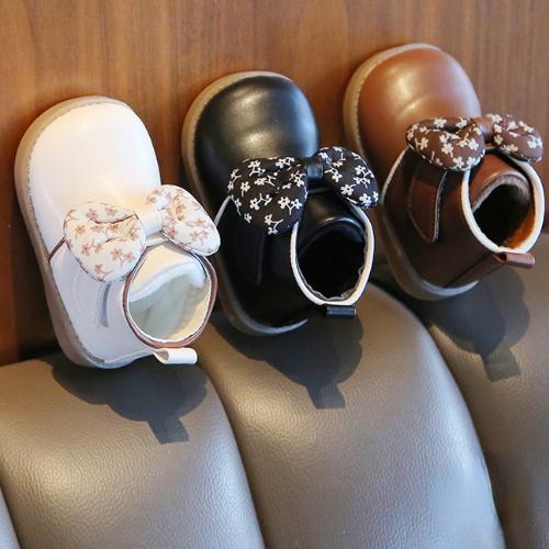 Kleines Mädchen Babylaufschuhe Weichsohlige Prinzessin Baumwollschuh Plüschisolierung Babyschuhe Schmetterlingsschleife Baby Mädchen Lederschuh