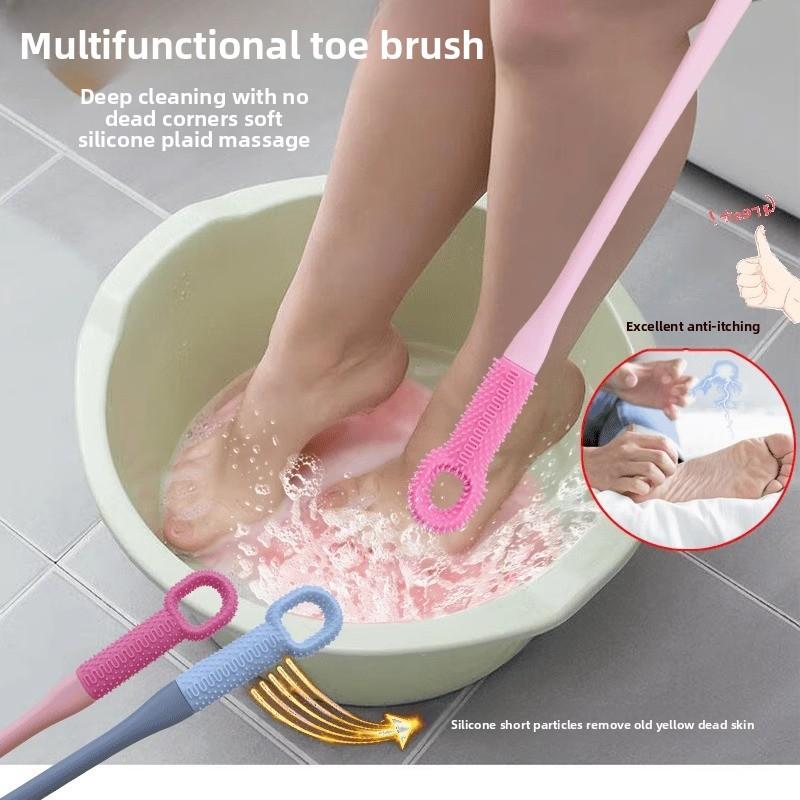 2-in-1 Zehenreinigungs- und Massagebürste Juckreizlinderung Fußreibebürste Langer Griff Massageartefakt Fußwasch- und Entfernerbürste für abgestorbene Haut