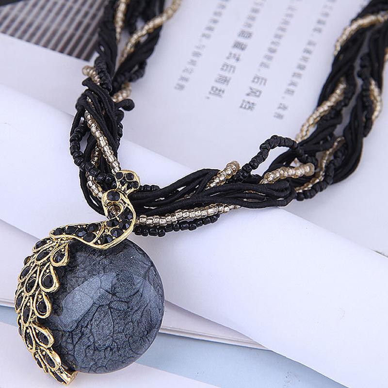 Elegante Vintage Fransen Quaste Anhänger Halskette Pfau Design für Damenpullover