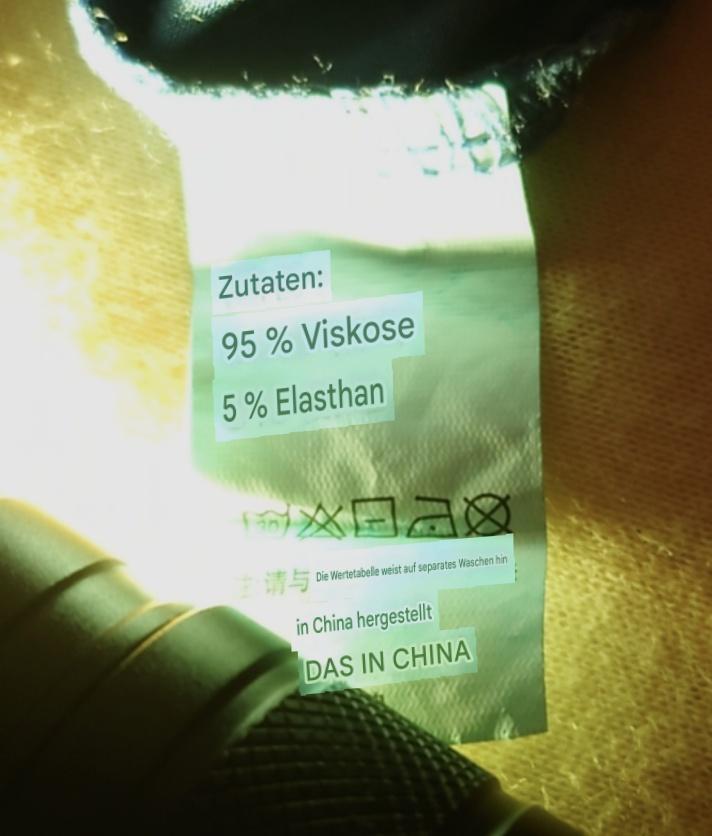 Trocknen auf der Wäscheleine im Schatten, Nicht bleichen, Trockenreinigung, Handwäsche im kalten Wasser, Bügeln bei normaler Temperatur unter 150 °C