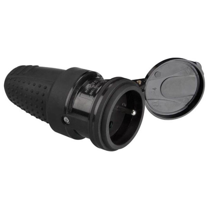 Prise Femelle - Terre Française - IP44 - Caoutchouc - Résistante aux intempéries - Protection enfants