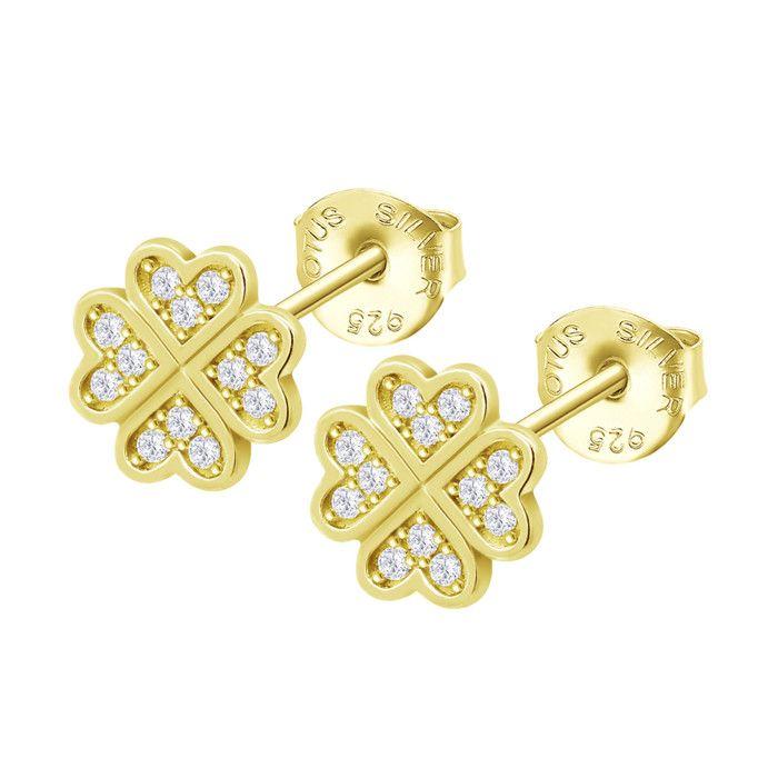 Boucles d'oreilles femme - Lotus - Boucles d'oreilles trèfle oxydes argent doré Lotus
