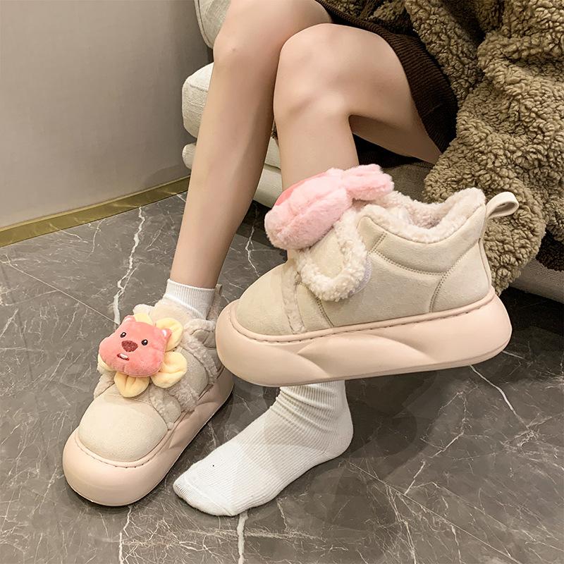 Women's velcro cartoon fall and winter padded warm cold thick bottom lightweight hiking waterproof non-slip plush snow boots cotton shoes