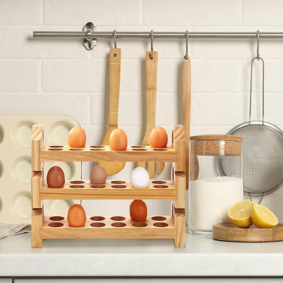 1/2/3 Stück Eieraufbewahrungsregal Theken-Eierspender Große Kapazität Stapelbarer Holz-Aufbewahrungsorganizer für Zuhause Küche