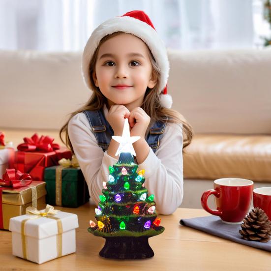 Leuchtende Lichtanzeige: Verleihen Sie Ihrem Raum mit dem bezaubernden Schein der LED-Lichter, die diesen Tischweihnachtsbaum schmücken, und dem funkelnden fünfzackigen Stern eine magische Weihnachtsatmosphäre.
