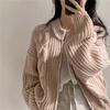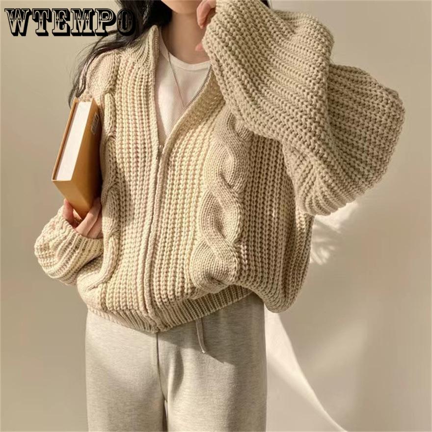 Herbst und Winter Damenpullover Lockerer Reißverschluss Krapfen Zopfmuster Dickstrick Cardigan