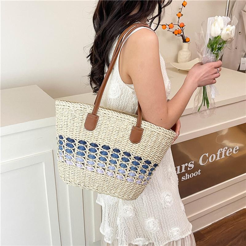 Einfache und vielseitige Damen-Strandtasche Sommer neue Stroh-Webtasche Damen große Kapazität Strandurlaub Webtasche