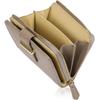 ■"Anti-Skimming-Funktion" Schützt wichtige Karteninformationen vor dem Zugriff von außen. [Produktspezifikationen] ●Größe: Höhe: Ca.. 12,5 cm Breite: Ca.. 9 cm, Dicke: Ca.. 3 cm ●Gewicht: Ca.. 105 g ●Material: Echtes Rindsleder, Kunstleder (nur Gürtel) Reißverschluss Farbe: Gold