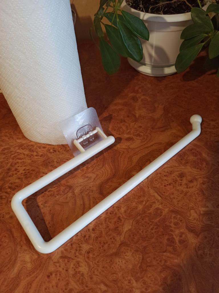 Papierhandtuchhalter Der Halter ist aus robustem Kunststoff gefertigt.. Unter dem Link stehen 2 Größen zur Auswahl, ich habe die größere bestellt, Länge - 28,5cm. Ein solcher Halter ist für Papierhandtücher gedacht, denn es ist immer ein Problem, wo man sie hinstellen soll.. Wird dank der mitgelieferten Klebeplatte leicht an Fliesen und Hängeschränken befestigt. Ich bin mit der Bestellung zufrieden. Zum Kauf kann ich es uneingeschränkt empfehlen.